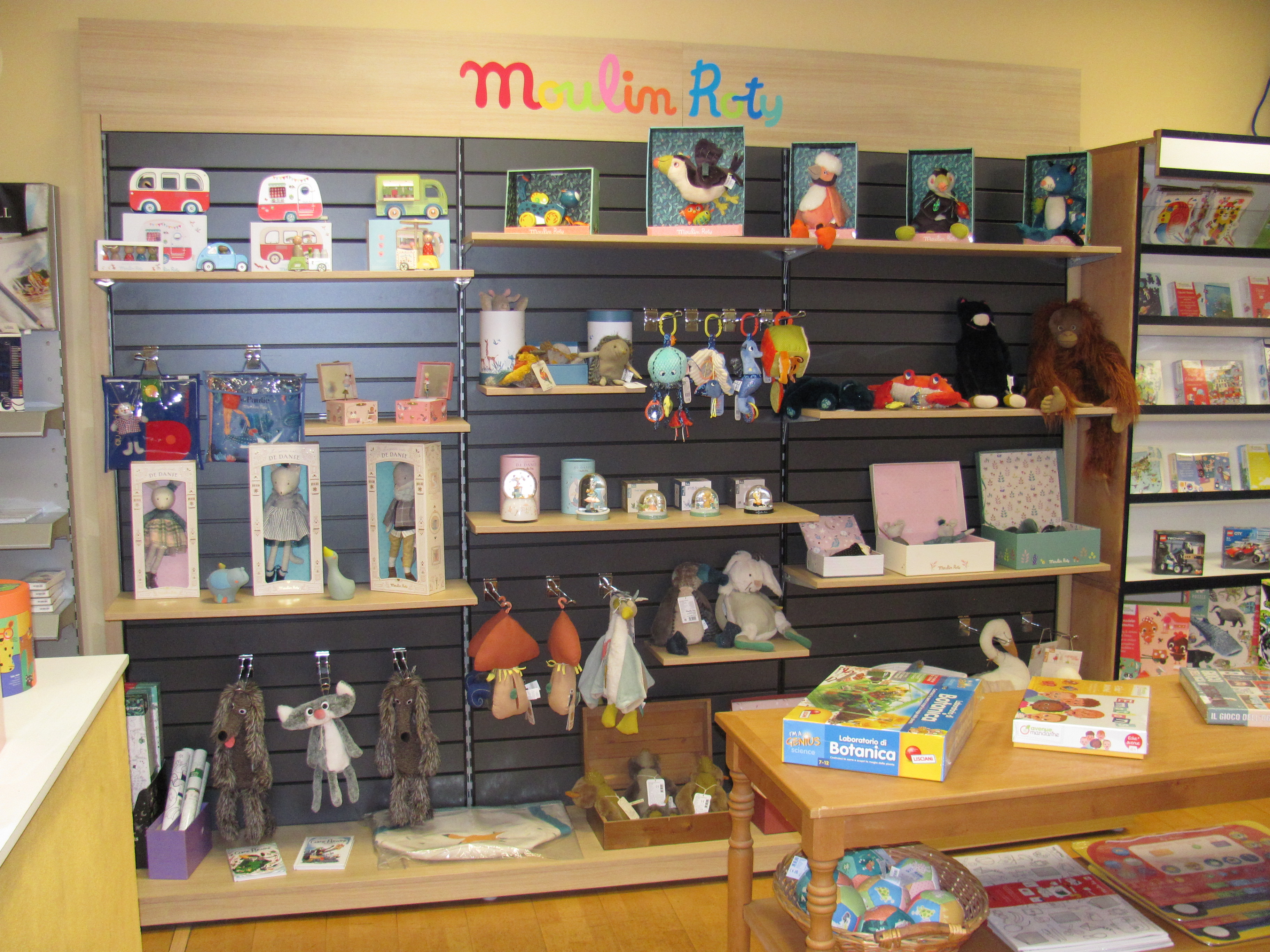Oltre 500 articoli per l'infanzia ed i giovani, dai giochi della Moulin Roty, a quelli della Avenue Mandarine e di altre case, sono presenti in negozio.